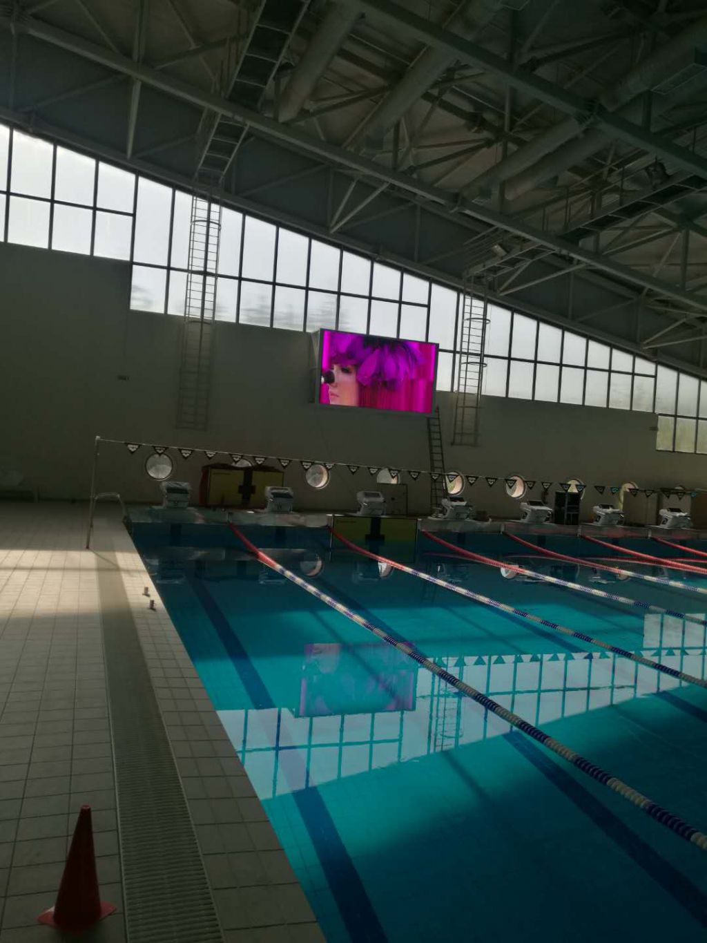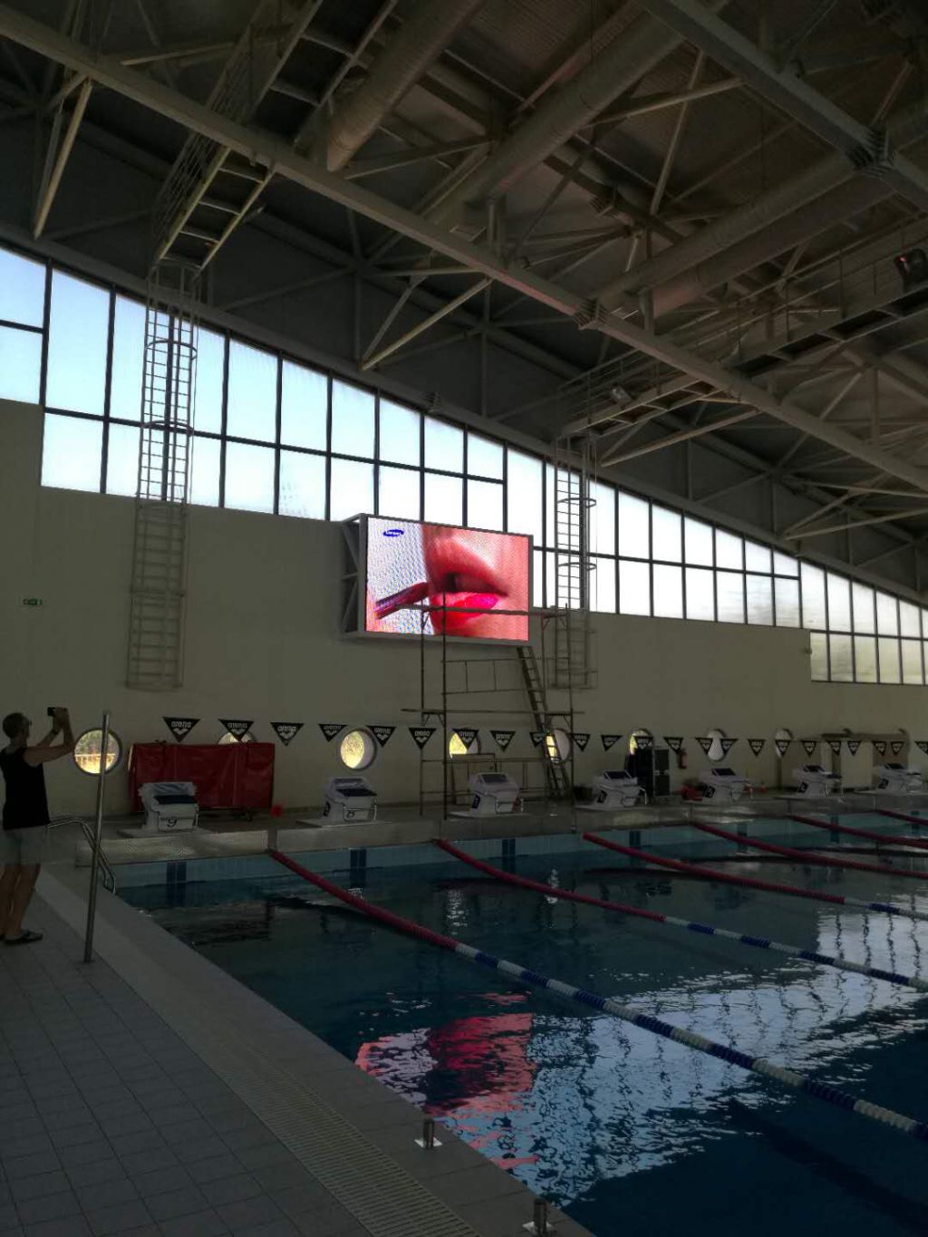 Indoor LED screen in natatorium in Greece, P10, width 5.12m, height 4.096